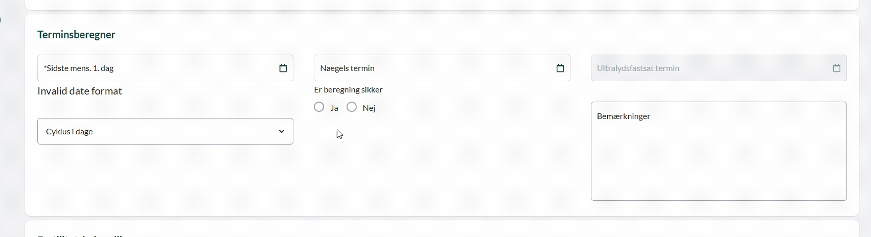 Det er muligt at redigere i Naegels termin, hvis det er nødvendigt. Desuden skal det bekræftes, at man har forholdt sig til den beregnede Naegels termin, før man kan færdiggøre 1. graviditetskonsultation.